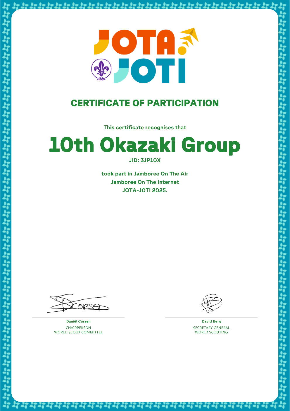 JOTA-JOTI参加証明書