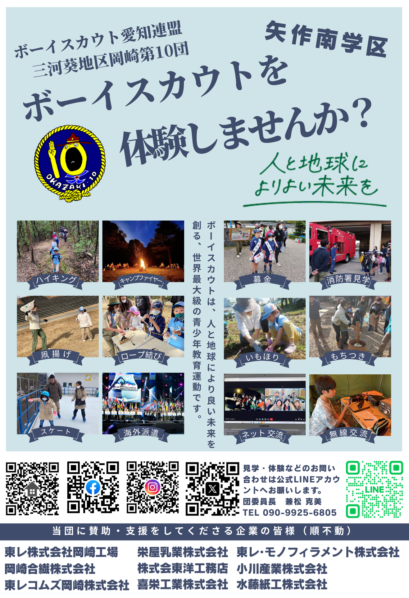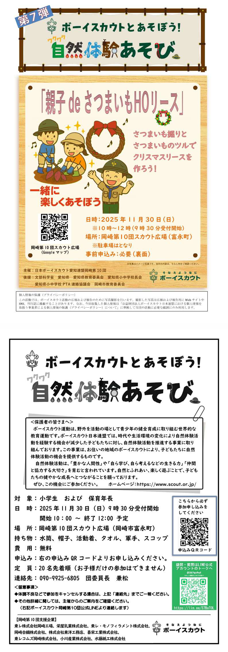 このホームページ上のスカウト運動に関する事項は、ボーイスカウト日本連盟ホームページ掲載「個人情報の保護(プライバシーポリシー)について」に沿って、岡崎第10団IT委員会の責任のもとに掲載しています。